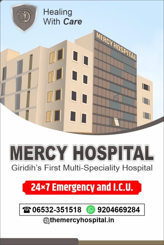 मर्सी हॉस्पिटल का कई बीमा कंपनियों के साथ टाई-अप अब कैशलेस होगा इलाज डीजे न्यूज, गिरिडीह : मसीॅ हॉस्पिटल में
