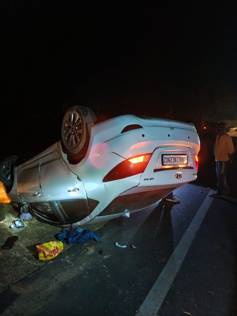 पीरटांड़ में सड़क हादसा: अनियंत्रित होकर पलटी कार, दो लोग घायल