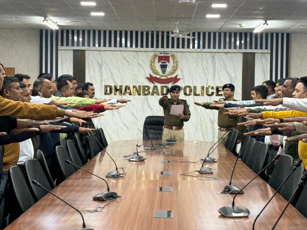 संविधान की प्रस्तावना का वाचन कर पुलिसकर्मियों ने लिया संकल्प डीजे न्यूज, धनबाद: भारत के संविधान अपनाए जाने की ऐतिहासिक