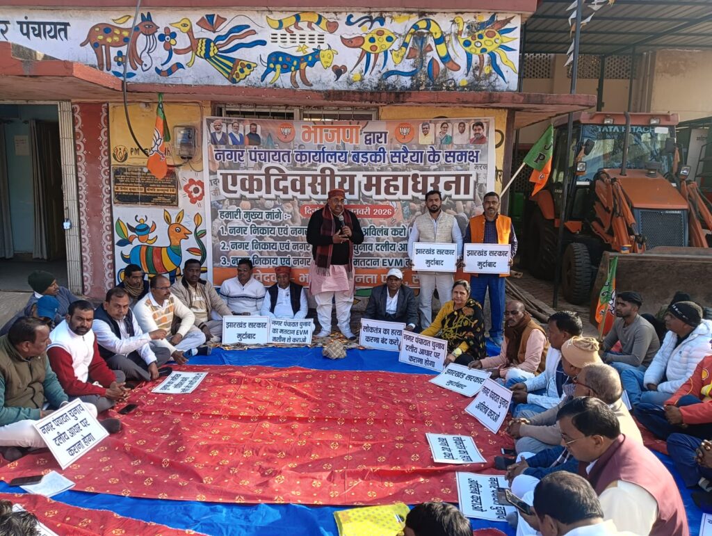 निकाय चुनाव टालकर जनता को संवैधानिक अधिकारों से वंचित कर रही सरकार : रविन्द्र राय सरिया नगरपंचायत कार्यालय में भाजपा