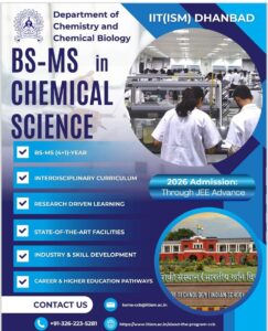 आइआइटी -आइएसएम में केमिकल साइंस के बीएस-एमएस प्रोग्राम में एडमिशन के लिए आवेदन आमंत्रित