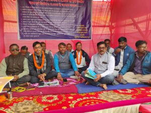 आमरण अनशन पर बैठे महुदा कॉलेज के प्राध्यापक और द्वारपाल