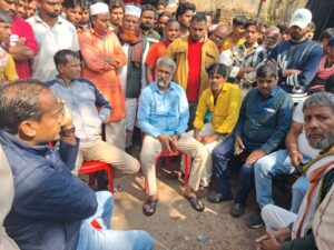 इसकी जानकारी मिलते ही खरखरी बस्ती के लोग मौके पर जुट गए। आक्रोशित भीड़ ने वाहन पर पथराव कर चालक की पिटाई भी किया। इस बीच चालक मौका पाकर भागने में सफल रहा। स्थिति बिगड़ने की आशंका को देखते हुए मधुबन, महुदा, बरोरा, बाघमारा और सोनारडीह सहित कई थानों की पुलिस मौके पर पहुंची। समाजसेवियों और पुलिसकर्मियों ने सक्रियता दिखाते हुए वाहन को आगजनी से बचाया। ग्रामीणों ने मृतक के परिजन को मुआवजा, नौकरी और नावागढ़ मोड़ पर सड़क किनारे लगी सब्जी दुकानों व अन्य अतिक्रमण हटाने की मांग को लेकर सड़क जाम कर दिया। लोगों का कहना था कि मोड़ पर दोनों ओर सब्जी की दुकानें सड़क पर ही लग जाती हैं, जिससे मार्ग संकरा हो जाता है। आए दिन जाम की स्थिति बनी रहती है। सड़क जाम के कारण महुदा, कतरास, बाघमारा और गोमो जाने वाला मुख्य मार्ग लगभग छह घंटे तक पूरी तरह बाधित रहा। बाघमारा अंचलाधिकारी गिरजा नंद किस्कु ने ग्रामीणों से बातचीत कर स्थिति सामान्य करने का प्रयास किया। बाद में मधुबन थाना परिसर में प्रशासन, आईबीपी कंपनी के अधिकारियों और ग्रामीण प्रतिनिधियों के बीच त्रिपक्षीय वार्ता हुई। बैठक में कंपनी की ओर से मृतक के आश्रित को कुल साढ़े 5 लाख रुपये मुआवजा देने पर सहमति बनी, जिसमें तत्काल दो लाख रुपये नकद और शेष राशि चेक के माध्यम से दी गई। साथ ही कंपनी में नियोजन उपलब्ध कराने का आश्वासन दिया गया। प्रखंड कार्यालय की ओर से विधवा पेंशन और आवास देने की घोषणा की गई।  समझौते के बाद दोपहर करीब एक बजे शव को घटनास्थल से उठाया गया और सड़क जाम समाप्त हुआ। इधर हादसे के बाद मृतक की पत्नी सहित पूरा परिवार शोकाकुल है। शेख हैदर अपने पांच पुत्रों और चार पुत्रियों का भरण-पोषण कर रहे  थे। उनकी असामयिक मृत्यु से परिजन व