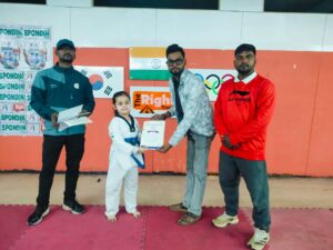 डीजे न्यूज, धनबाद: बैंक मोड़ स्थित द राइट ट्रेक ताइक्वांडो अकेडमी के सेंटर पॉइंट में सोमवार को बेल्ट ग्रेडिंग टेस्ट तथा सम्मान समारोह का आयोजन किया गया। रोटी बैंक के अध्यक्ष रवि शेखर ने बच्चों को बेल्ट तथा सर्टिफिकेट देकर सम्मानित किया। उन्होंने बच्चों को हर संभव सहयोग करने का आश्वासन दिया। सम्मानित हुए बच्चों में नूर व्यास, आराध्या पांडे, रितु कुमारी, लिखीता शर्मा, प्राची, श्रुति शर्मा, सांची गोस्वामी, मिस्बा, सोनाली कुमारी, आदिति श्रीवास्तव, पहल जैन, दीक्षा, युवान गोयल, समृद्ध, वैभव, रितेश, राज आर्य, आर्यन, सुनीरमल, रुद्र चौहान, फरहाद अंजुम, उदय पंडित, रजत गुप्ता, दीपक, अयान देय,अभिजीत प्रजापति तथा कोच विशाल कुमार पंडित, भवानी कुमार चौहान शामिल हैं। मौके पर समाजसेवी नीलकमल खवास ओर ताइक्वांडो अकेडमी सेंटर पॉइंट के सभी सदस्य उपस्थित थे।