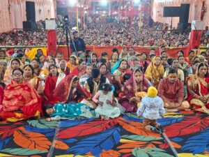 स्टीलगेट दुर्गा मंदिर में ‘हर के आँगन में हरि कथा’ के छठे दिन उमड़ी भीड़, श्रीकृष्ण-रुक्मणी विवाह पर झूमे श्रद्धालु