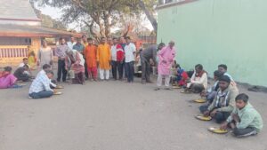 भंडारा में प्रसाद ग्रहण करने जुटे श्रद्धालु