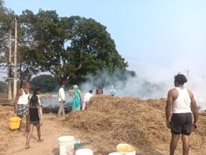 बिरनी के चिरुडीह में आग की घटना, हजारों रुपए की धान जलकर राख