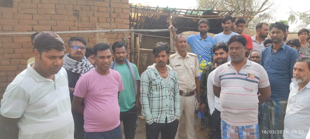 आंगनबाड़ी निर्माण में अनियमितता, आक्रोशित ग्रामीणों ने कराया काम बंद हंगामा देख थानेदार और मुखिया पहुंचे, संवेदक को फटकार