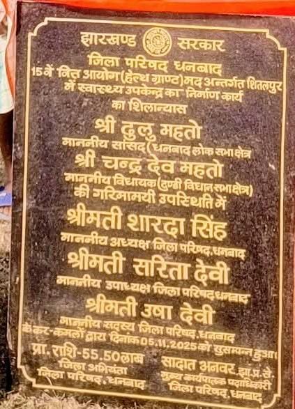 शिलापट्ट में सिंदरी विधानसभा के बजाय टुंडी विधानसभा अंकित, लोगों में रोष डीजे न्यूज, बलियापुर(धनबाद): बीते दिनों शीतलपुर में 15वीं