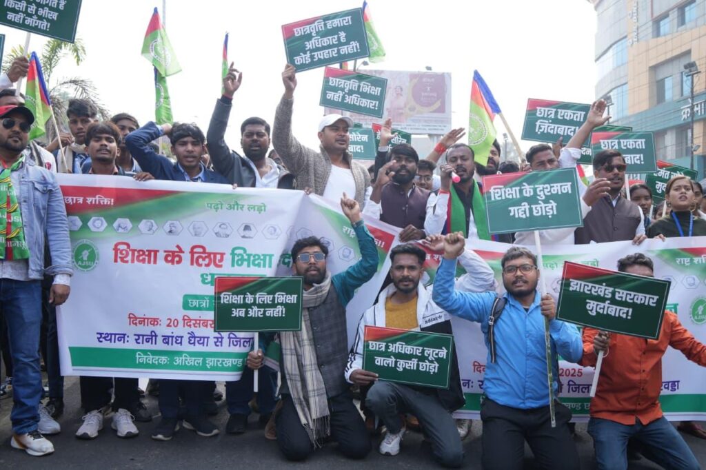लंबित छात्रवृत्ति भुगतान की मांग को सड़क पर उतरे छात्र डीजे न्यूज, धनबाद: लंबित छात्रवृत्ति की भुगतान करने की मांग