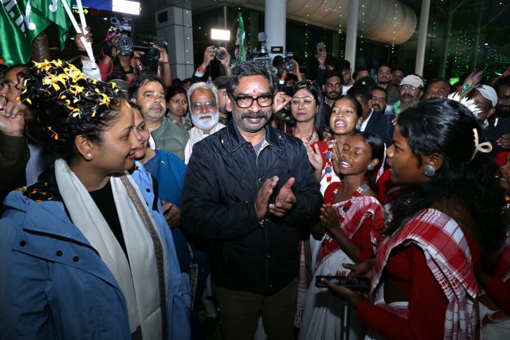 दावोस व लंदन की यात्रा से लौटे हेमंत, ढोल-नगाड़ों के साथ स्वागत बिरसा मुंडा एयरपोर्ट रांची परिसर में मुख्यमंत्री