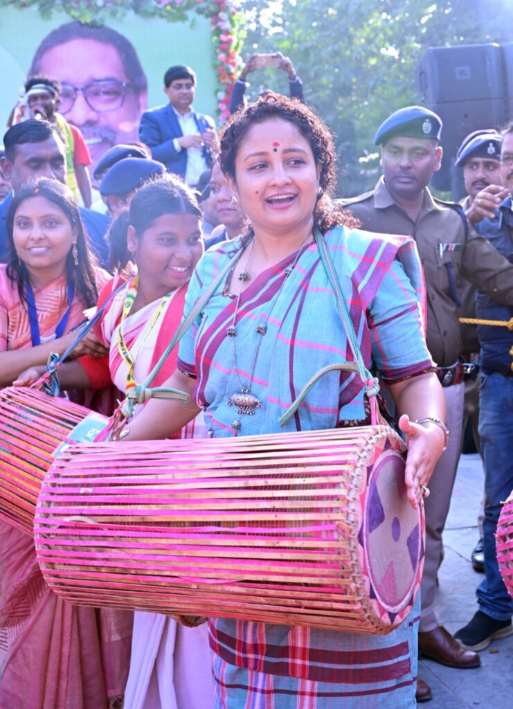 मुख्यमंत्री हेमंत सोरेन ढोल-नगाड़ा बजाकर झारखंड जतरा में हुए शामिल कृषि मंत्री शिल्पी नेहा तिर्की एवं विधायक कल्पना सोरेन ने