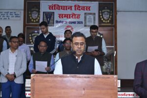 डीजे न्यूज, धनबाद: मंडल रेल प्रबंधक कार्यालय, धनबाद में बुधवार को संविधान दिवस मनाया गया। मंडल रेल प्रबंधक  अखिलेश मिश्र सहित मंडल के अन्य अधिकारियों एवं कर्मचारियों द्वारा संविधान की प्रस्तावना का वाचन किया गया। उन्होंने अधिकारियों एवं कर्मचारियों सहित राष्ट्र को लोकतंत्रात्मक गणराज्य बनाने के लिए, राष्ट्र की एकता और अखण्डता सुनिश्चित करने वाली बन्धुता बढ़ाने के लिए संविधान को अंगीकृत, अधिनियमित और आत्मार्पित किया।