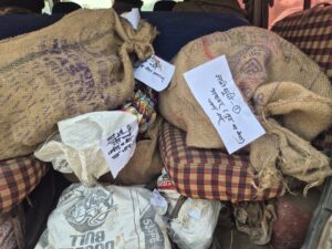 तीन जूट के बोरे एवं एक प्लास्टिक बोरे में अर्द्धजला तांबा का तार,