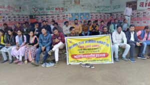 धरना पर बैठे झारखंड राज्य आजीविका कर्मचारी संघ के कर्मी