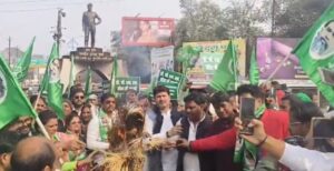 गैस रिसाव व भू-धंसान के खिलाफ झामुमो का हल्ला बोल, खान मंत्री का फूंका पुतला