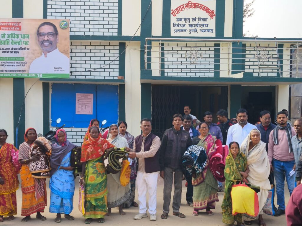 डीजे न्यूज, टुंडी(धनबाद) : बढ़ते ठंड से गरीबों को राहत दिलाने के लिए राज्य सरकार ने पंचायतों को कंबल उपलब्ध कराया है। इसी योजना के तहत कमारडीह पंचायत में टुंडी विधायक सह सत्तारूढ़ दल के मुख्य सचेतक मथुरा प्रसाद महतो ने शुक्रवार को जरूरतमंदों के बीच कंबल वितरण किया।