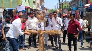 संजीव सिंह के समर्थकों ने झरिया में डीआरएम का पुतला जलाया