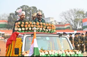 डीजे न्यूज, देवघर : 77वें गणतंत्र दिवस के अवसर पर मुख्य समारोह स्थल केकेएन स्टेडियम, देवघर में भव्य एवं गरिमामय कार्यक्रम का आयोजन किया गया। इस मौके पर अल्पसंख्यक कल्याण विभाग एवं जल संसाधन विभाग के मंत्री हफीजुल हसन ने झंडोत्तोलन किया और राष्ट्रध्वज को सलामी दी। उन्होंने सभी जिलावासियों को गणतंत्र दिवस की शुभकामनाएं देते हुए इसे राष्ट्रीय स्वाभिमान और संविधान की शक्ति का प्रतीक बताया।