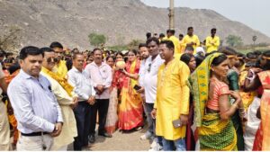 डीजे न्यूज, बलियापुर(धनबाद): सुरंगा के कुम्हार टोला में आयोजित हनुमंत महायज्ञ सह रामचरितमानस परायण यज्ञ के निमित शुक्रवार को भव्य कलश यात्रा निकाली गई। महिला एवं युवतियां कलश लेकर गांव के बड़ा तालाब पहुंची। यहां वृंदावन से आए आचार्य अभिषेक कृष्ण शास्त्री, पंडित विनोद पांडे, ओम प्रकाश पांडे द्वारा वैदिक मंत्रोच्चार के साथ कलशों में जलभरण करवाया। कलश यात्रा में शामिल सैकड़ो लोग जयकारे के साथ गांव के विभिन्न टोला का भ्रमण करते हुए यज्ञ स्थल पर पहुंचे। पूजा अर्चना के बाद यज्ञ स्थल पर कलश स्थापना किया गया। कलश यात्रा में भाजपा नेत्री तारा देवी, प्रखंड प्रमुख पिंकी देवी, चंडी चरण देव, राधेश्याम रजक, अजीत कुंभकार, भोला कुंभकार, कालीपद कुंभकार आदि शामिल हुए।