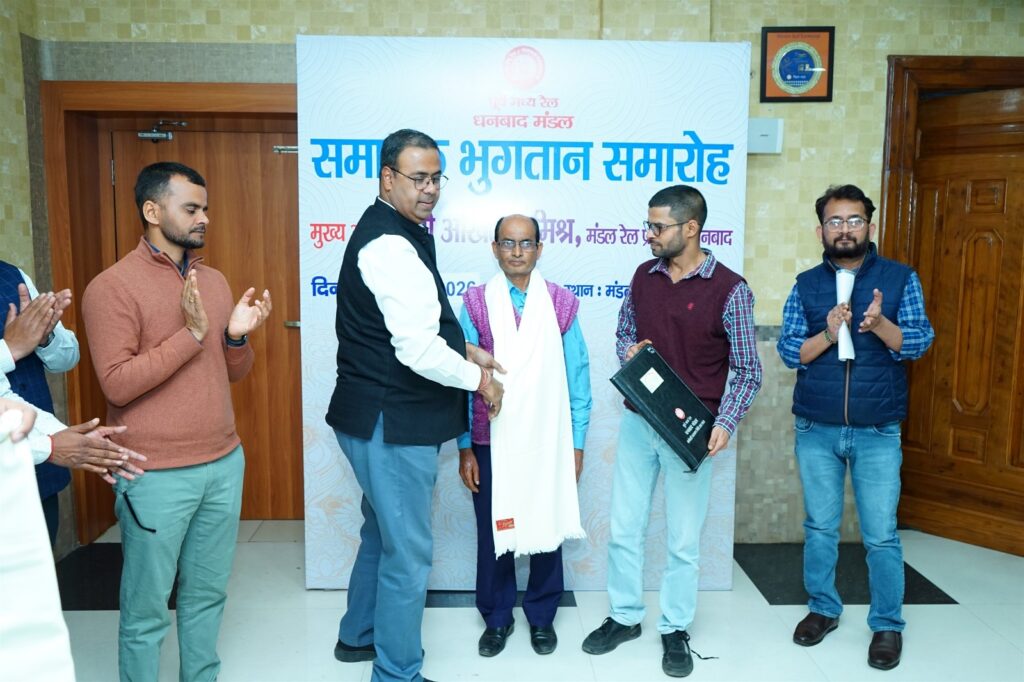 सेवानिवृत रेल कर्मियों का किया गया समापक भुगतान डीजे न्यूज, धनबाद: मंडल रेल प्रबंधक कार्यालय में सोमवार को विदाई समारोह