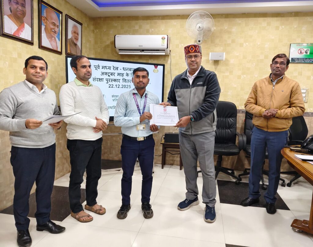 उत्कृष्ट कार्य हेतु दिया गया संरक्षा पुरस्कार डीजे न्यूज, धनबाद: मंडल रेल प्रबंधक कार्यालय, धनबाद में सोमवार को संरक्षा पुरस्कार