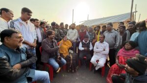 डीजे न्यूज, धनबाद: भौरा 16 नम्बर निवासी चतुरी हाड़ी की सड़क दुर्घटना में मृत्यु की  सूचना पाकर शनिवार को झरिया विधायक रागिनी सिंह एवं पूर्व विधायक संजीव सिंह घटनास्थल पर पहुंचे। जहा परिजनों द्वारा शव रखकर आउटसोर्सिंग कंपनी के खिलाफ एवं अपने अधिकारों के तहत उचित मुआवजे की मांग को लेकर धरना-प्रदर्शन किया जा रहा था।