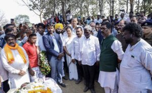 डीजे न्यूज, रांची: मुख्यमंत्री हेमन्त सोरेन गुरुवार को सरायकेला-खरसावां जिले के जिलिंगोड़ा पहुँचे।  उन्होंने पूर्व मुख्यमंत्री चंपई सोरेन के पोते, वीर सोरेन, के असामयिक निधन पर गहरी शोक-संवेदना व्यक्त की। दिवंगत वीर सोरेन,  बाबूलाल सोरेन के ज्येष्ठ पुत्र थे। मुख्यमंत्री ने दिवंगत वीर सोरेन के पार्थिव शरीर पर पुष्पचक्र अर्पित कर उन्हें श्रद्धांजलि दी तथा शोकाकुल परिवार के प्रति अपनी गहरी संवेदनाएँ प्रकट कीं। उन्होंने पूर्व मुख्यमंत्री  चंपई सोरेन, बाबूलाल सोरेन एवं परिवार के अन्य सदस्यों से भेंट कर उन्हें ढाँढस बंधाया। मुख्यमंत्री ने मरांग बुरु से प्रार्थना की कि वे दिवंगत आत्मा को शांति प्रदान करें और शोकग्रस्त परिजनों को इस असहनीय दुःख को सहने की शक्ति दें।