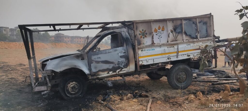 पूर्वी टुंडी में बिचाली लदे पिकअप वैन में लगी आग, चालक झुलसा, बाल-बाल बचे तीन मजदूर
