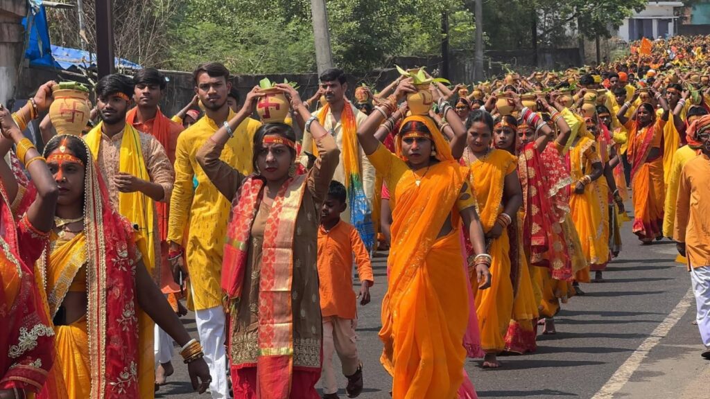 कलश यात्रा से पूर्व नवयुवक टोली द्वारा पूरे क्षेत्र में सफाई अभियान चलाया गया तथा मार्गों पर पानी का छिड़काव कर वातावरण को स्वच्छ और सुगम बनाया गया।