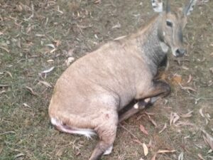 डीजे न्यूज, बिरनी, गिरिडीह : जमुआ वन प्रक्षेत्र के अंतर्गत बिरनी प्रखंड की चौंगाखार पंचायत में चरगो–करमा के बीच डबरसैनी–जोराशाख मुख्य मार्ग पर बटेश्वर पेट्रोल पंप के पास सोमवार को एक नीलगाय घायल अवस्था में पाई गई। गांव वालों ने नीलगाय को तड़पता देखा तो तुरंत वन विभाग को सूचना दी।