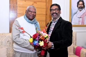 डीजे न्यूज, रांची: मंत्री चमरा लिंडा, मंत्री हाफिजूल हसन तथा सत्तारूढ़ दल के मुख्य सचेतक मथुरा प्रसाद महतो ने शनिवार को मुख्यमंत्री हेमंत सोरेन से उनके कांके रोड स्थित आवास पर मुलाकात की। इस अवसर पर उन्होंने मुख्यमंत्री को नववर्ष-2026 की हार्दिक शुभकामनाएं एवं बधाई दी। मुख्यमंत्री ने भी सभी को नववर्ष की मंगलकामनाएं दीं और राज्य वासियों के सुख, समृद्धि तथा विकास की कामना की।