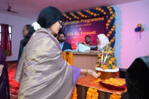 इसके पश्चात बीएड सत्र 2025-27 के प्रशिक्षुओं को डायरी, पेन व सिलेबस दिया गया वहीं डी एल एड सत्र 2023-25 के टॉप टेन प्रशिक्षु मोनाली गुप्ता, पिंकी कुमारी, निधि कुमारी, दीपा कुमारी, संगीता कुमारी, श्वेतांश शेखर, संजना कुमारी, नीलम कुमारी, अंकित कुमार, अनुराधा कुमारी, अनुराधा कुमारी व किरण कुमारी को मोमेंटो व प्रस्सति पत्र देकर प्रोत्साहित किया गया। साथ ही मोनाली गुप्ता को डिस्टिक टॉपर व स्टूडेंट ऑफ द सेसन , उमा मुर्मू को मोस्ट डिसिप्लिन,शिवम् कुमार को मोस्ट ओबेडिएंट तधा संगीता, पूजा, कंचन, रिजवाना व शिवम् चौरसिया को ऑल टाइम एक्टिव स्टूडेंट का अवार्ड दिया गया।इस दौरान प्रशिक्षुओं में काफी उत्साह देखने को मिला। कार्यक्रम के समन्वयक के रूप में डॉ संतोष कुमार चौधरी ने महत्वपूर्ण भूमिका निभाई सुर कार्यक्रम को सफल बनाया। मंच संचालन की भूमिका में प्रशिक्षु तसकीन सबा व सुभम कुमार ने काफ़ी अच्छी भूमिका अदा की। इस मौके पर सभी सहायक प्राध्यापकगण, शिक्षकेत्तर कर्मचारी व प्रशिक्षु छात्र-छात्राएँ उपलब्ध रहे।