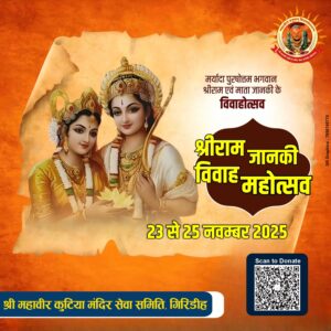 डीजे न्यूज, गिरिडीह : श्री राम जानकी ब्याह महोत्सव का आयोजन 23 नवंबर से 25 नवंबर तक प्राचीन सिद्धपीठ श्री महावीर कुटिया मंदिर परिसर, गिरिडीह में किया जाएगा। इस महोत्सव में श्री राम जी की बारात, श्री राम जानकी जी की व्याह झांकी, सजन गोठ और भजन-अमृत वर्षा जैसे आकर्षक कार्यक्रम शामिल हैं।