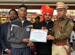 डीजे न्यूज, धनबाद: युवा स्केटिंग प्रतिभा रुद्रांश शर्मा को स्केटिंग में उत्कृष्ट उपलब्धियों के लिए सम्मानित किया गया है। डीसी आदित्य रंजन व एसएसपी प्रभात कुमार ने यह सम्मान गणतंत्र दिवस समारोह के दौरान रुद्रांश के समर्पण, अनुशासन और खेल में शानदार प्रदर्शन को पहचानते हुए दिया है।