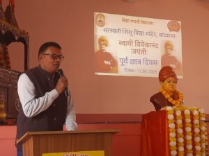 डीजे न्यूज, कतरास(धनबाद); सरस्वती शिशु विद्या मंदिर बाघमारा में स्वामी विवेकानंद जयंती, राष्ट्रीय युवा दिवस एवं पूर्व छात्र सम्मेलन के अवसर पर स्वदेशी संकल्प दौड़ का आयोजन किया गया। कार्यक्रम की शुरुआत विद्यालय प्रबंधकारिणी समिति के सचिव विनय कुमार पांडेय, वरिष्ठ आचार्य सुभाष चौधरी, आचार्य राजेश कुमार एवं पूर्व छात्रों द्वारा स्वामी विवेकानंद की प्रतिमा पर माल्यार्पण और पुष्पांजलि से हुई। सचिव ने भैया-बहनों को राष्ट्रीय युवा दिवस की शुभकामनाएं देते हुए कहा कि स्वामी विवेकानंद का जीवन युवाओं के लिए प्रेरणा स्रोत है। उन्होंने भारतीय संस्कृति को विश्व पटल पर विशेष पहचान दिलाई। आचार्य सुबोध कुमार ने विवेकानंद के जीवन प्रसंगों पर प्रकाश डालते हुए कहा कि मनुष्य को अपने जीवन का लक्ष्य तय कर निरंतर परिश्रम करना चाहिए। छात्र दिव्यांशु ने विवेकानंद के वेश में शिकागो धर्म सम्मेलन का भाषण प्रस्तुत किया, वहीं छात्रा शिवानी ने भगिनी निवेदिता की भूमिका निभाई। पूर्व छात्र सुरेश कुमार, विवेक कुमार, खुशबू कुमारी और आरती कुमारी ने विद्यालय से जुड़े अपने अनुभव साझा किए। राष्ट्रीय युवा दिवस पर सामाजिक चेतना के उद्देश्य से स्वदेशी संकल्प दौड़ का आयोजन किया गया, जिसमें छात्रों ने उत्साहपूर्वक भाग लिया। कार्यक्रम का संचालन आचार्या भारती सिन्हा ने किया तथा धन्यवाद ज्ञापन आचार्य राजेश कुमार मिश्रा ने प्रस्तुत किया। कार्यक्रम को सफल बनाने में सभी आचार्यों का सराहनीय योगदान रहा।