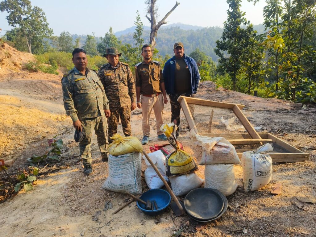 तिसरी के सुरक्षित वन में अवैध माइका खनन पर कार्रवाई, चार सौ किलो माइका और औजार जब्त