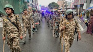 उपायुक्त के नेतृत्व में गिरिडीह शहर में निकला फ्लैग मार्च