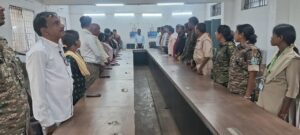 बलियापुर प्रखंड कार्यालय के सभागार में सीओ मुरारी नायक एवं बीडीओ प्रभाष कुमार दास के नेतृत्व में प्रखंड एवं अंचल कार्यालय कर्मियों ने सामूहिक रूप से वंदे मातरम गीत का गायन किया।
